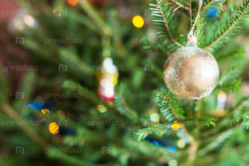 Стеклянные украшения на веточках живой елки