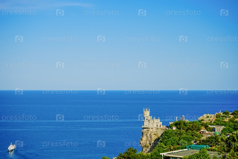 Морской пейзаж с видом на знаменитое ласточкино гнездо на фоне синего моря