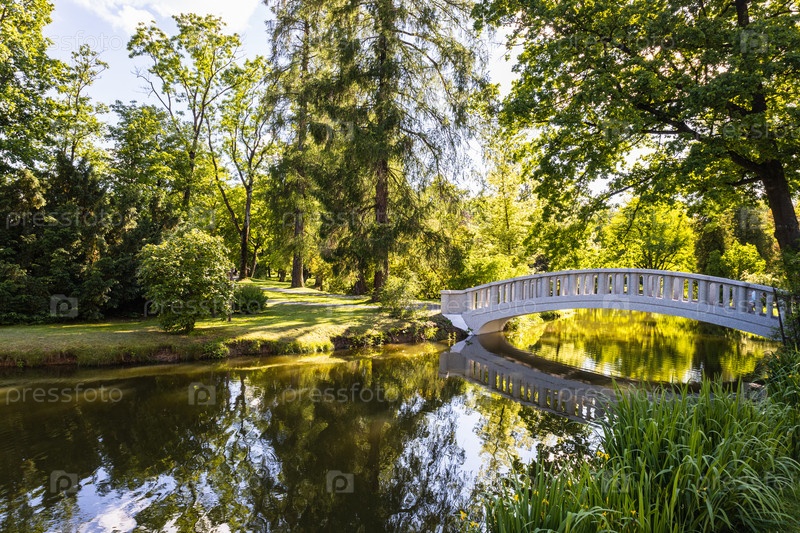 Ландшафт сада летнего парка с утиным прудом