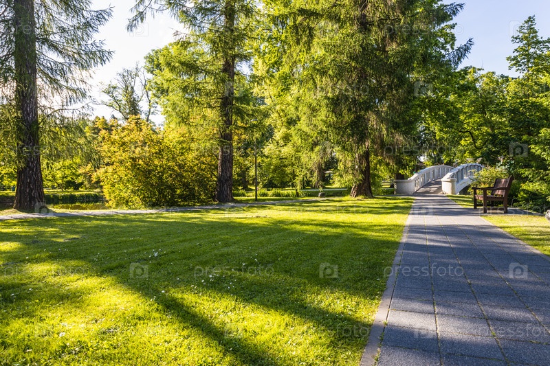 Общественный парк с прудом для отдыха и луговым полем