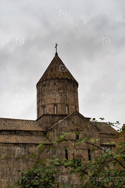 Армения, Татев, сентябрь 2022 г. Вид на храм сквозь ветки ежевики