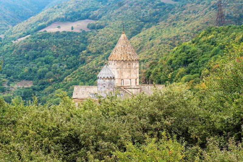 Армения, Татев, сентябрь 2022 г. Армянский храм среди яблоневого сада