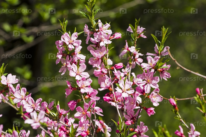 Цветящий карликовый миндаль (Amygdalus nana, другие названия - бобовник, низкий миндаль) в Аптекарском саду (филиал Ботанического сада МГУ).Москва