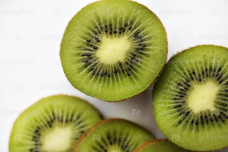Зеленый и сочный киви крупным планом. Макрофото киви сочных тропических фруктов