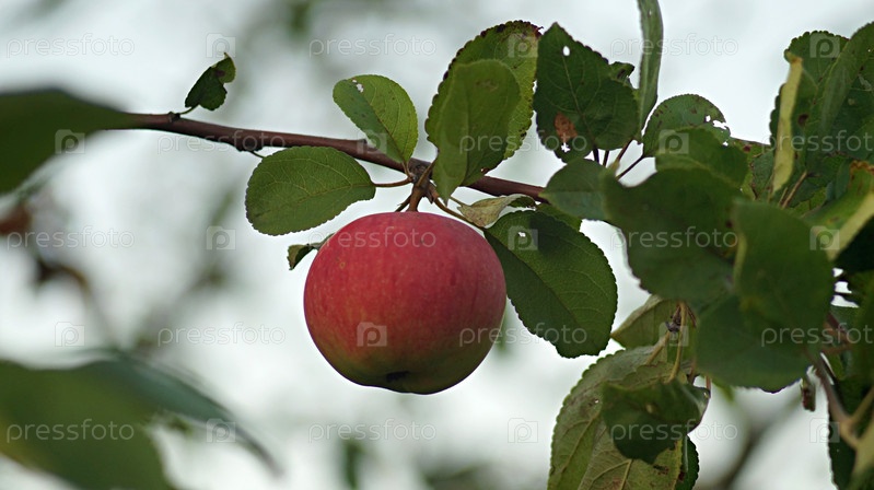 Спелое яблоко висит на дереве