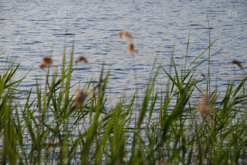 Зеленый тростник в озерной воде