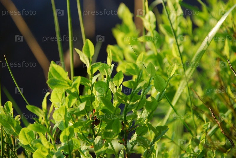 Куст черники растет у водохранилища