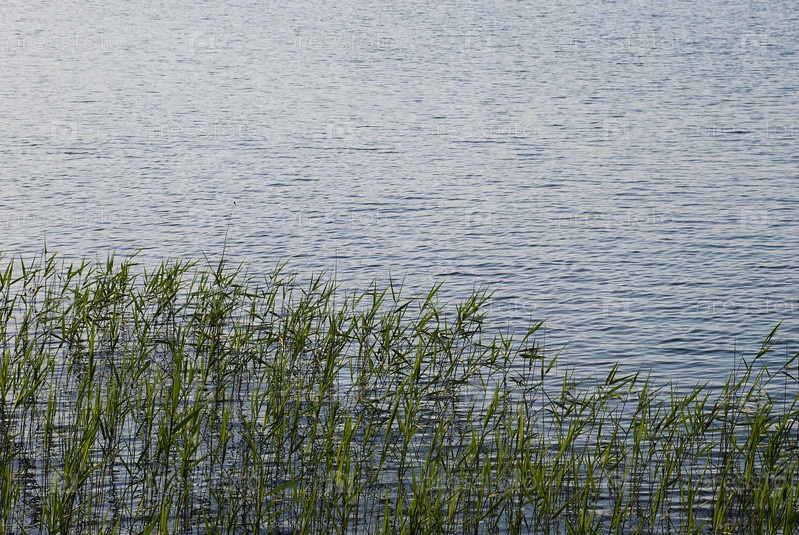 Зеленый тростник в озерной воде