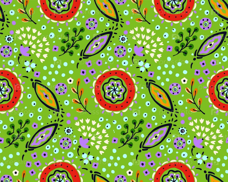 Бесшовный узор с фантазийными цветами, этнический вращающийся повторяющийся дизайн ткани и плитки, натуральные обои, иллюстрация завитка цветочного декора. Пейсли печатает рисованные элементы. Домашний декор