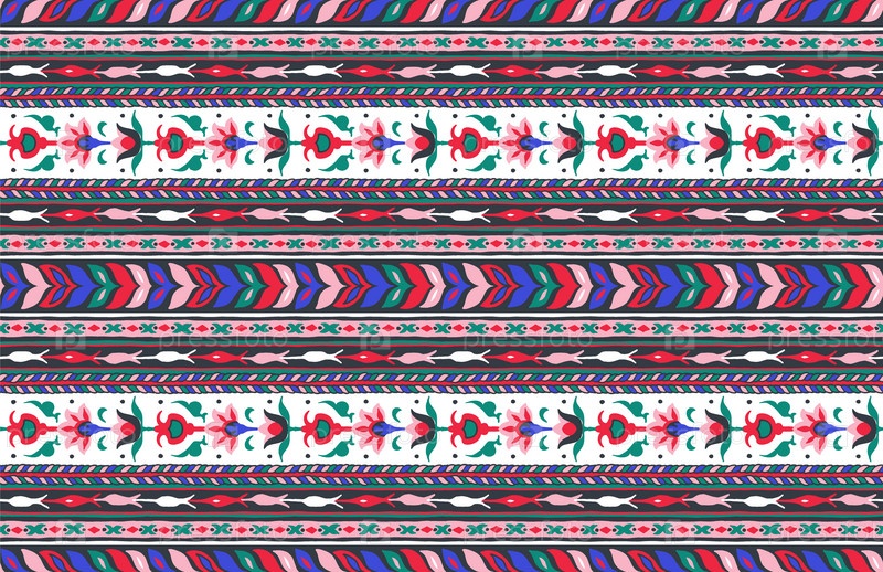 Геометрический фольклорный орнамент икат. Племенная этническая векторная текстура. Бесшовный полосатый узор в стиле ацтеков. Рисунок племенной вышивки. Индийский, скандинавский, цыганский, мексиканский, народный узор