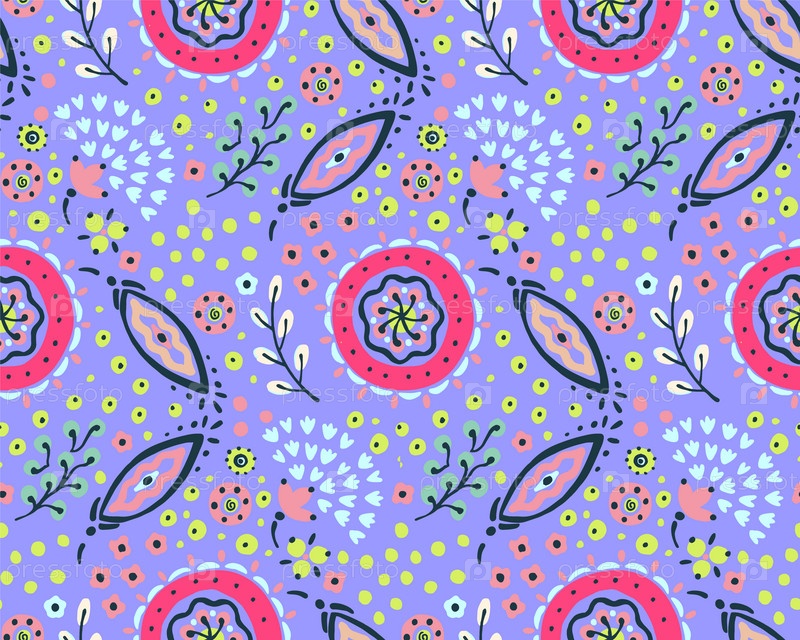 Бесшовный узор с фантазийными цветами, этнический вращающийся повторяющийся дизайн ткани и плитки, натуральные обои, иллюстрация завитка цветочного декора. Пейсли печатает рисованные элементы. Домашний декор