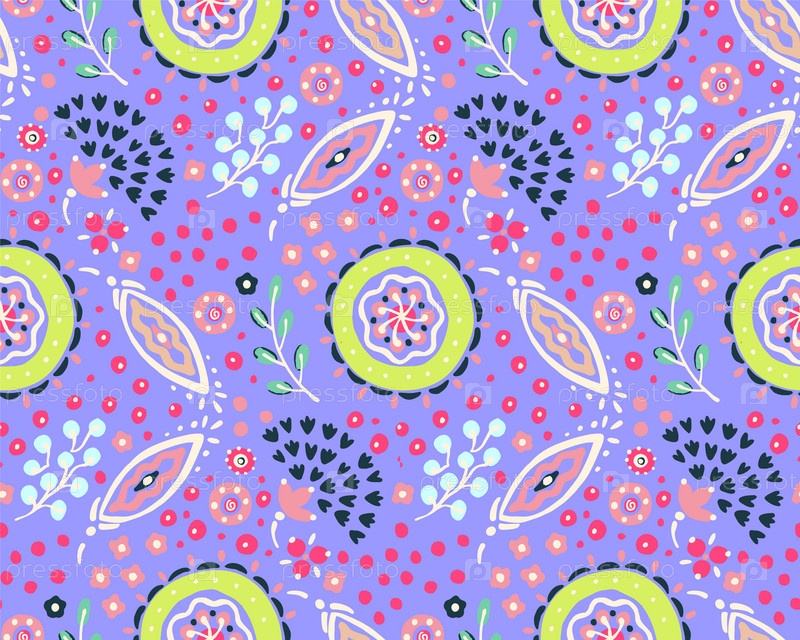 Бесшовный узор с фантазийными цветами, этнический вращающийся повторяющийся дизайн ткани и плитки, натуральные обои, иллюстрация завитка цветочного декора. Пейсли печатает рисованные элементы. Домашний декор