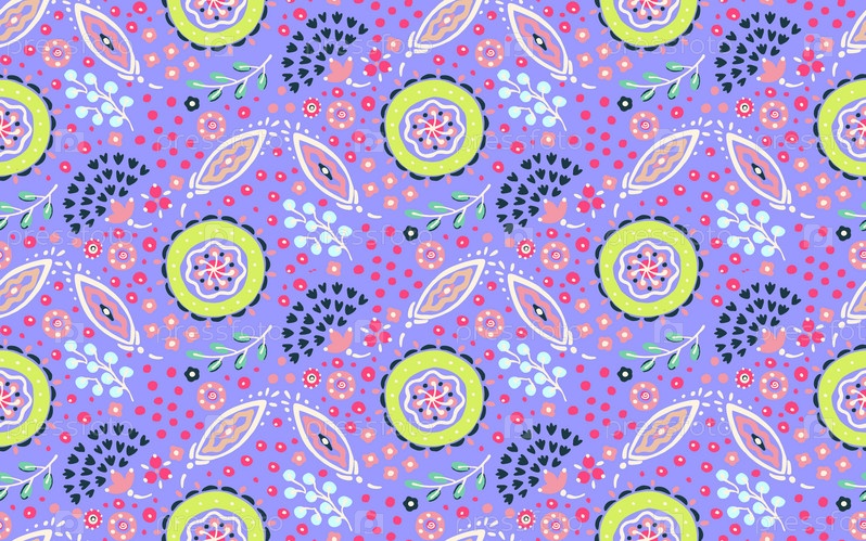 Бесшовный узор с фантазийными цветами, этнический вращающийся повторяющийся дизайн ткани и плитки, натуральные обои, иллюстрация завитка цветочного декора. Пейсли печатает рисованные элементы. Домашний декор