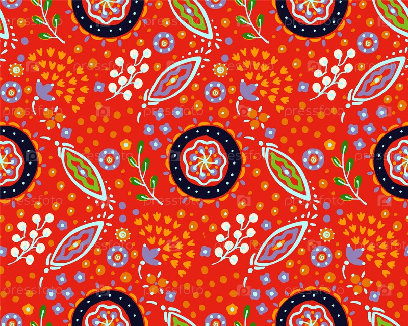 Бесшовный узор с фантазийными цветами, этнический вращающийся повторяющийся дизайн ткани и плитки, натуральные обои, иллюстрация завитка цветочного декора. Пейсли печатает рисованные элементы. Домашний декор