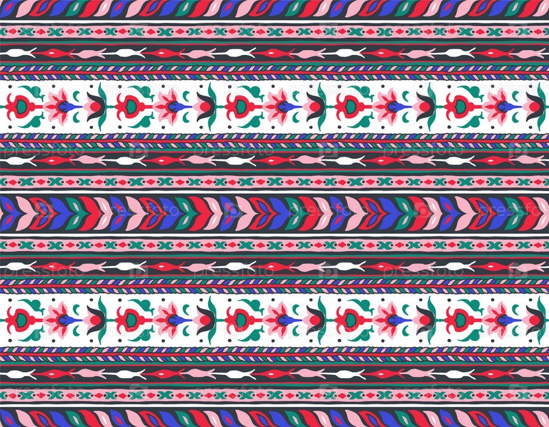 Геометрический фольклорный орнамент икат. Племенная этническая векторная текстура. Бесшовный полосатый узор в стиле ацтеков. Рисунок племенной вышивки. Индийский, скандинавский, цыганский, мексиканский, народный узор