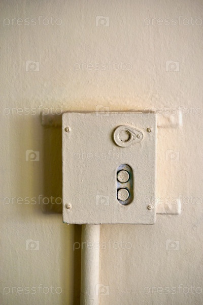 Старое железное реле запуска и остановки на стене. Железный ящик с пуговицами в казарме