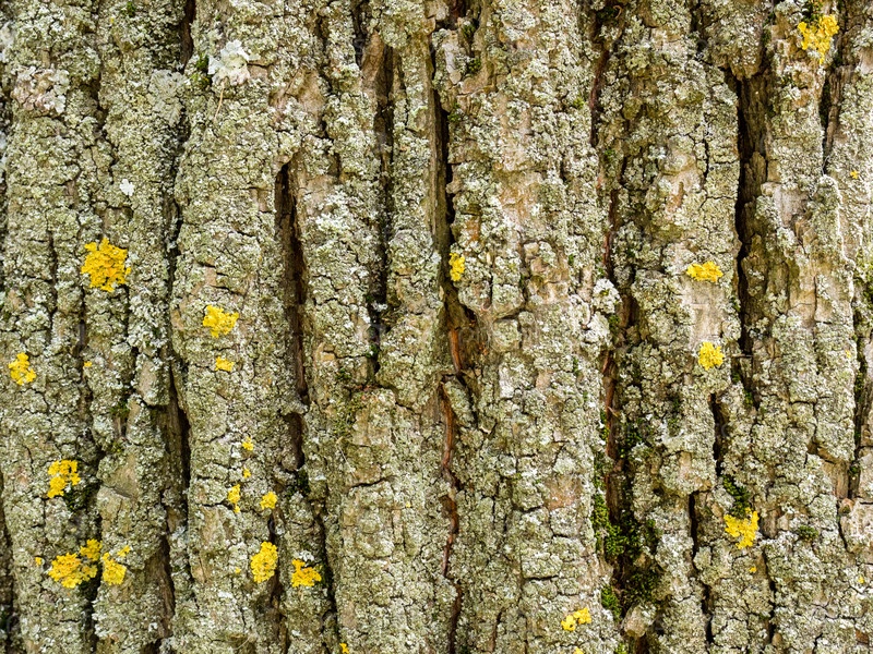 Кора старого дуба. Естественный деревянный текстурированный абстрактный фон дерева с трещинами и лишайником