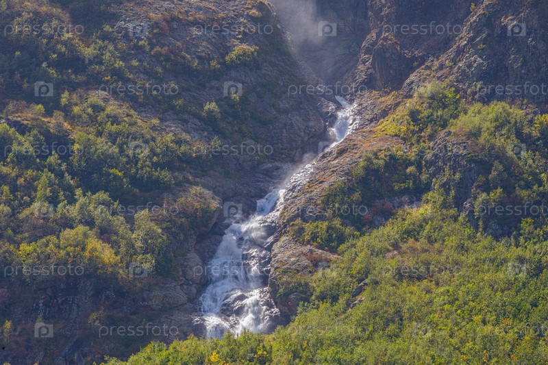 Ледник Тана в Северной Осетии, горные водопады в высокогорье