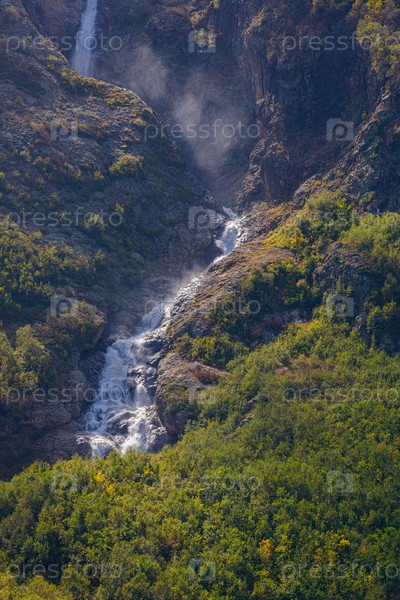 Ледник Тана в Северной Осетии, горные водопады в высокогорье