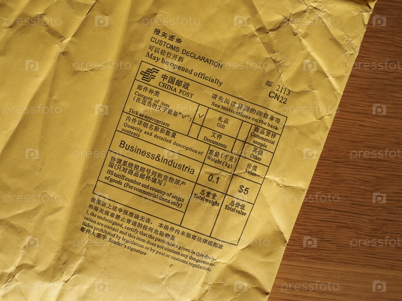 Китайская таможенная декларация и почтовый счетчик на иностранную посылку из китая. (Перевод: см. текст на английском языке под каждым текстом на китайском языке)