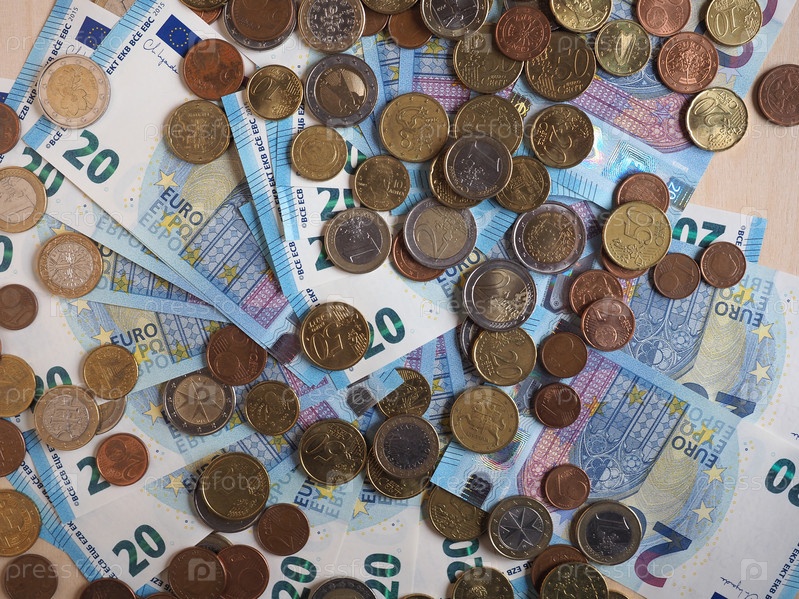 Банкноты и монеты евро (EUR), валюта Европейского Союза