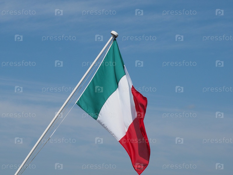 Итальянский национальный флаг Италии, Европы над голубым небом