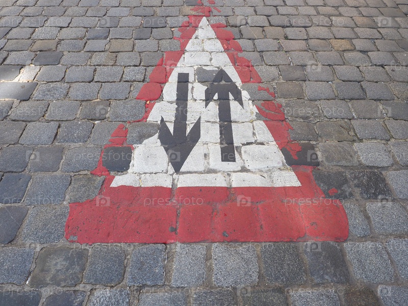 Предупреждающие знаки, двусторонний дорожный знак, нарисованный на дороге