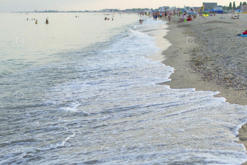 Курортная зона. Морское побережье с отдыхающими на пляже