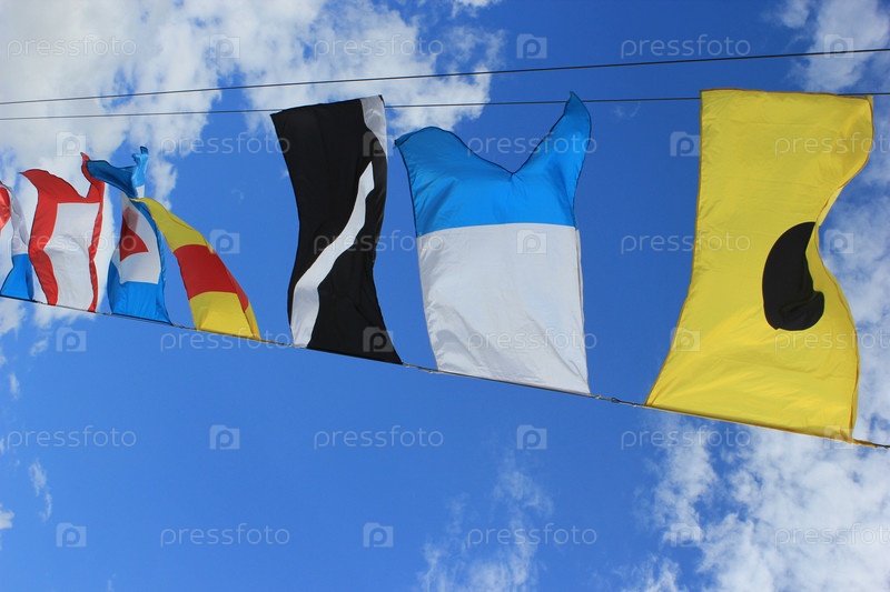 Украшение города сигнальными флагами ко дню военно-морского флота. Санкт-Петербург, Россия