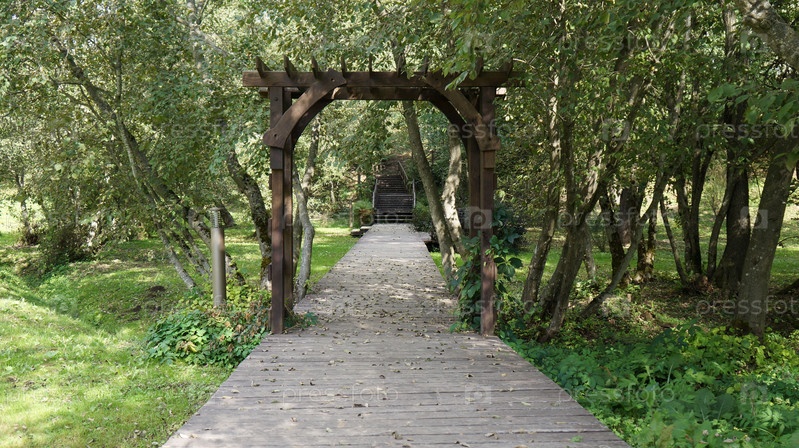 Дорожка и арка из дерева в парке