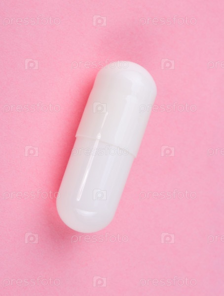Белая таблетка на розовом фоне