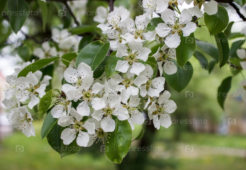 Поздний завтрак с цветами вишни крупным планом в весенний день