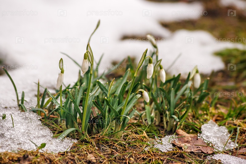 Цветущие подснежники весной
