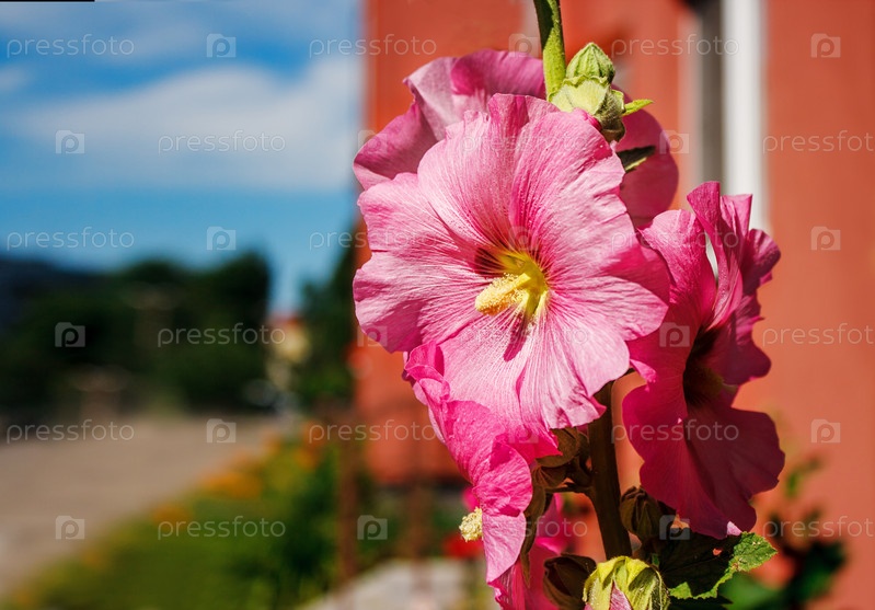 Красные мальвы в саду