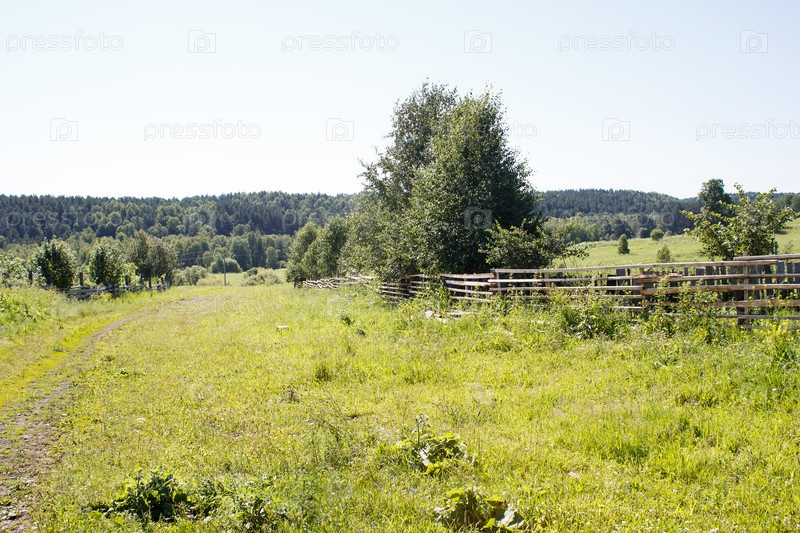 Грунтовая дорога в сибирской деревне в солнечный летний день