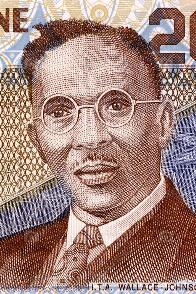 Уоллес Джонсон (1894-1965) на купюре 2000 леонов 2006 года из Сьерра-Леоне. Рабочий, журналист, активист и государственный деятель в Сьерра-Леоне и британской Западной Африке