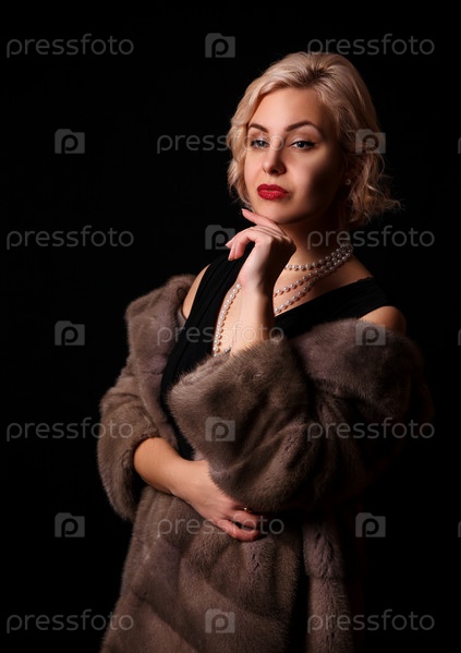 Портрет молодой блондинки в шубе в студии