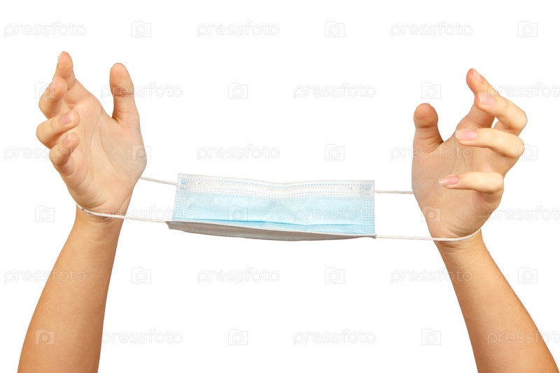 Женские руки с медицинской маской, изолированные на белом фоне. концепция здоровья