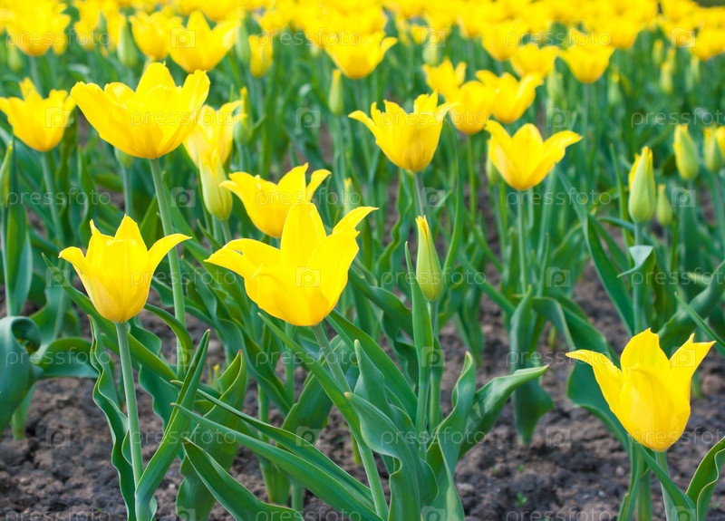 Ярко-желтые тюльпаны в городском парке