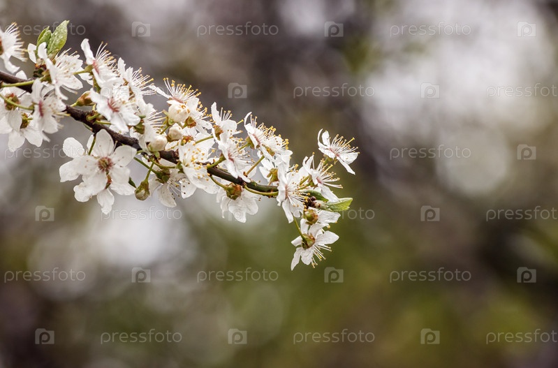 Вишневый цвет на ветке. открытый крупным планом. весенний день