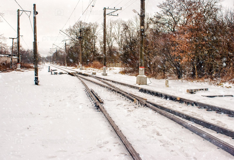 Железная дорога уходит вдаль зимой