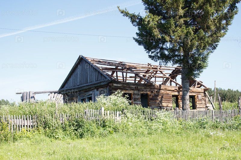 Старый заброшенный деревянный дом в сибири в солнечный летний день