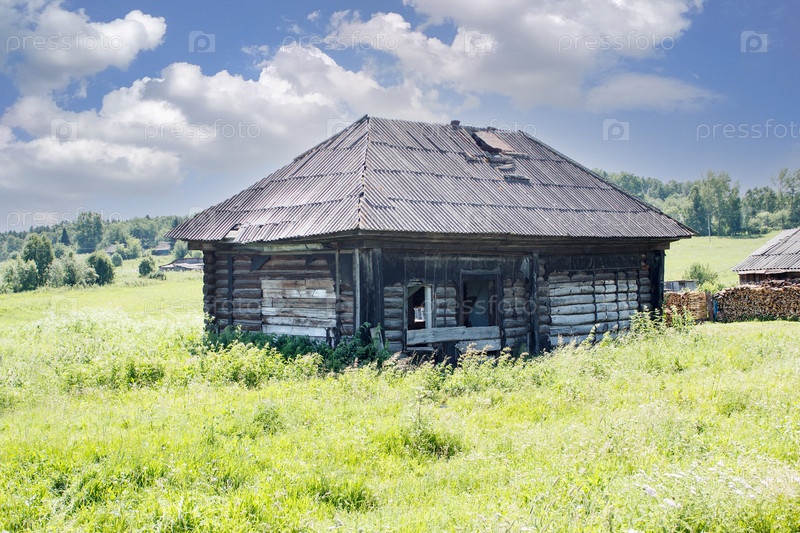 Старый заброшенный деревянный дом в сибири в солнечный летний день