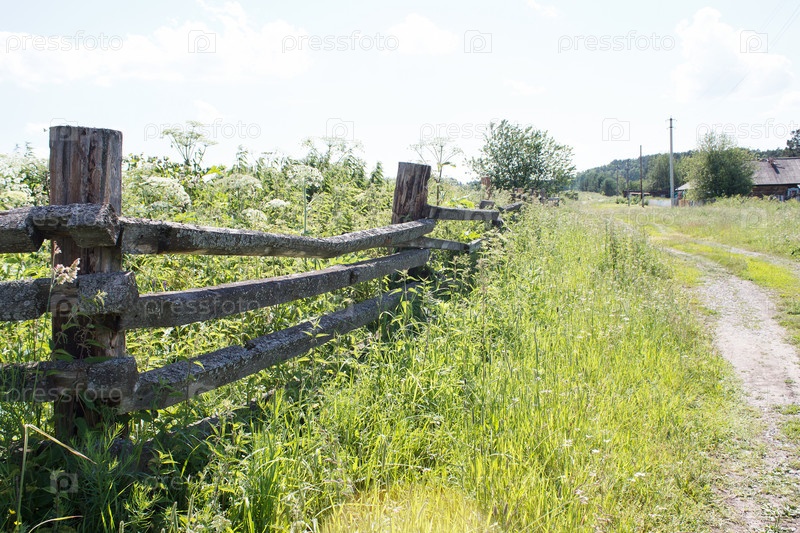 Грунтовая дорога в сибирской деревне в солнечный летний день