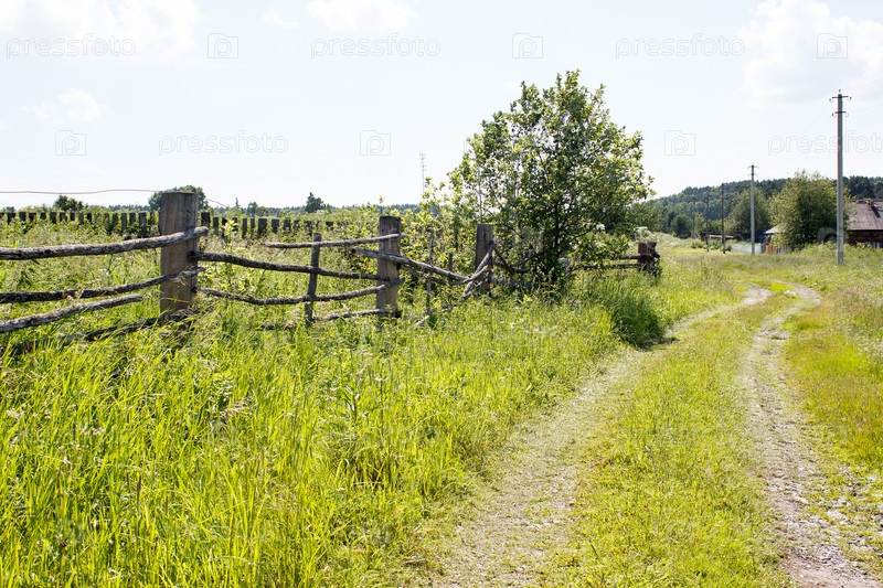 Грунтовая дорога в сибирской деревне в солнечный летний день