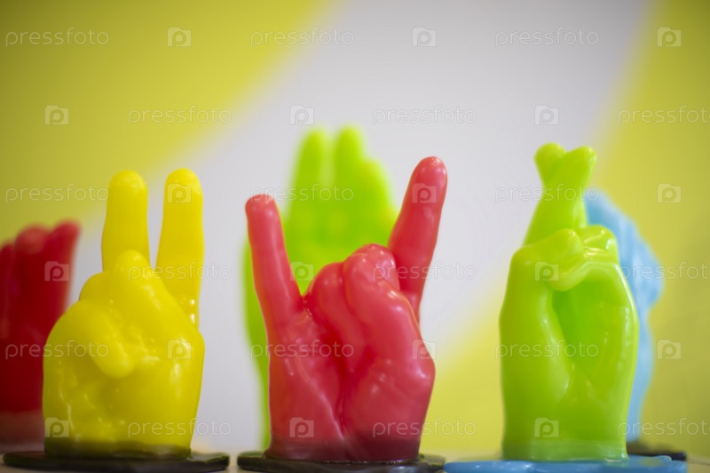 Модель руки человека из воска имеет разные знаки. Восковой слепок кисти и пальцев