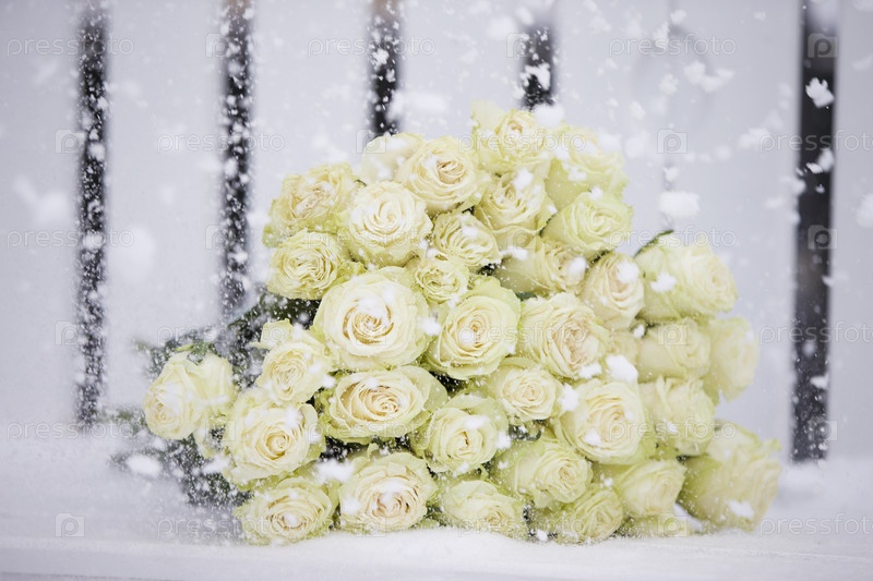 Букет белых роз снежно-белоснежный