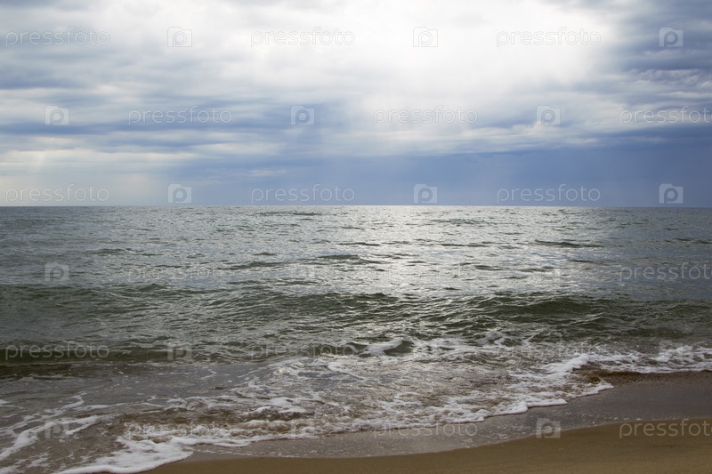 Морской пейзаж с облаками в небе с волнами