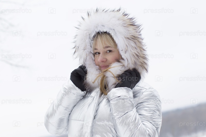 Женщина в пушистом капюшоне