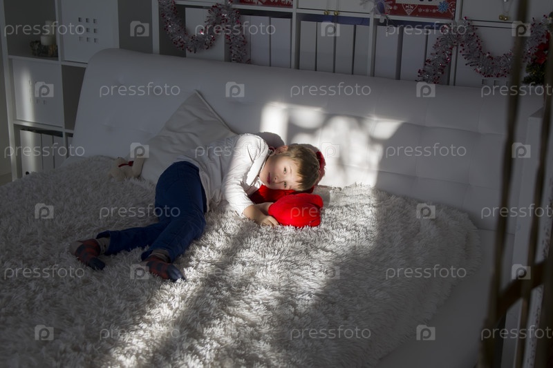 Мальчик лежит на белой кровати. Дошкольник устал